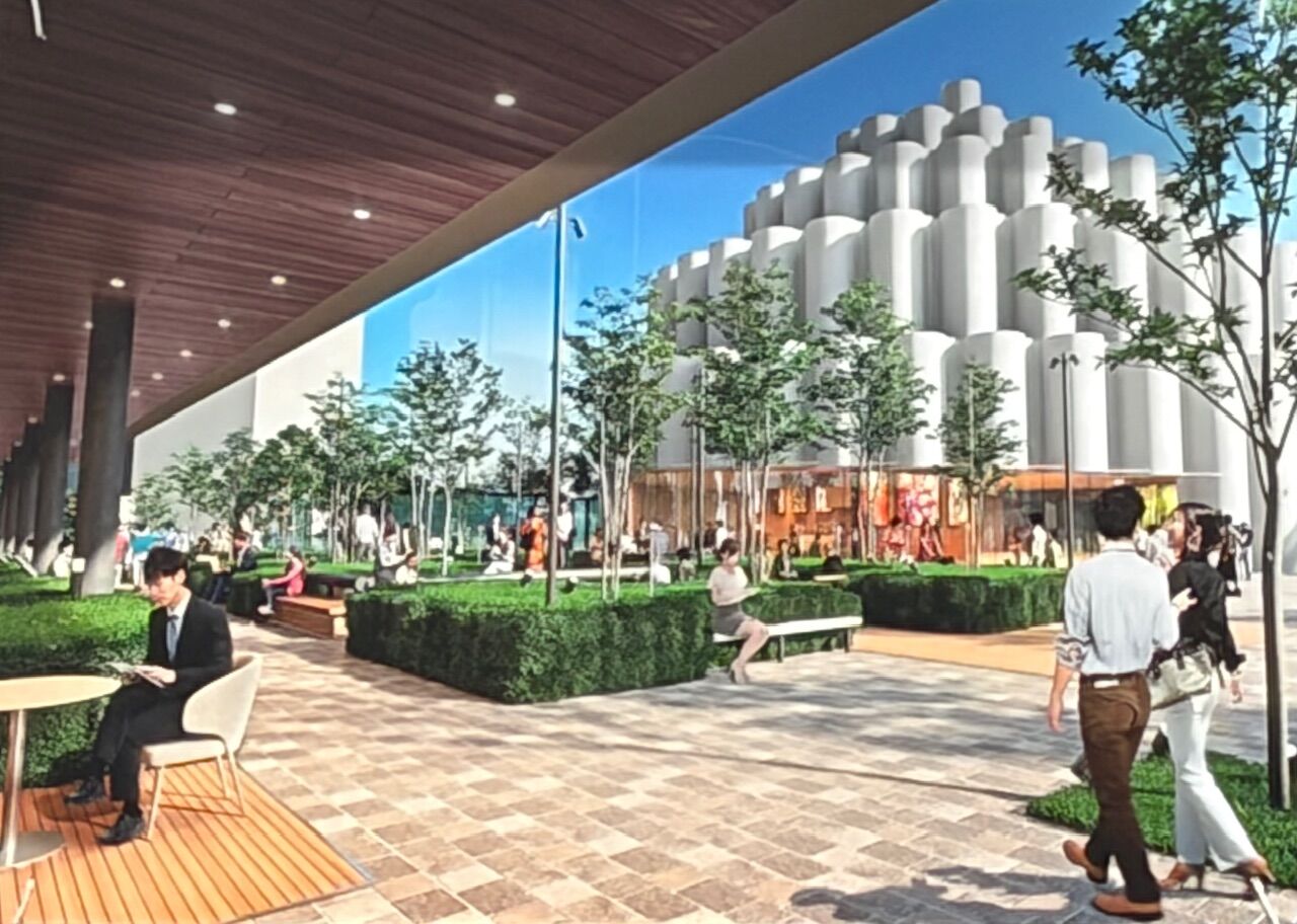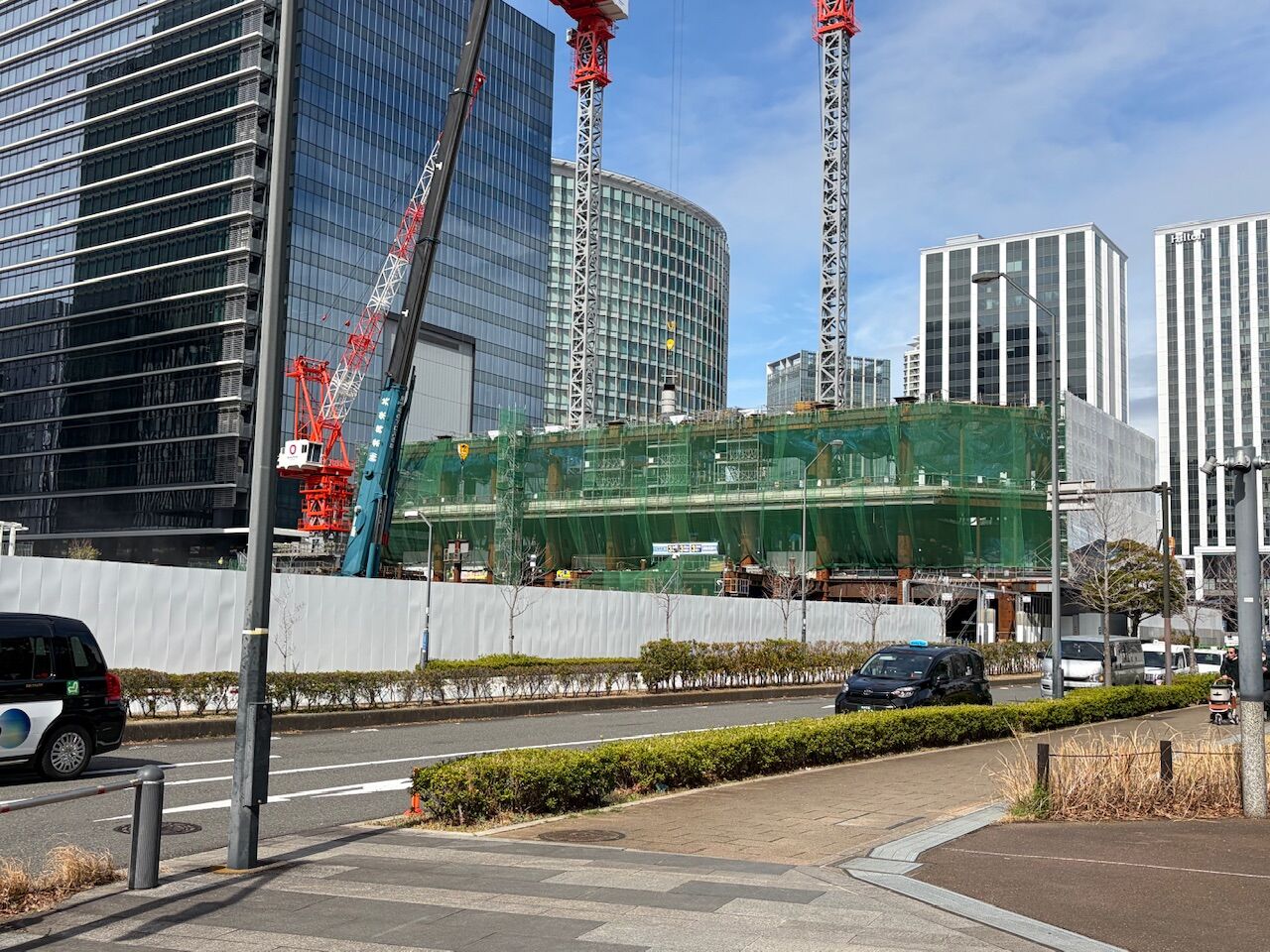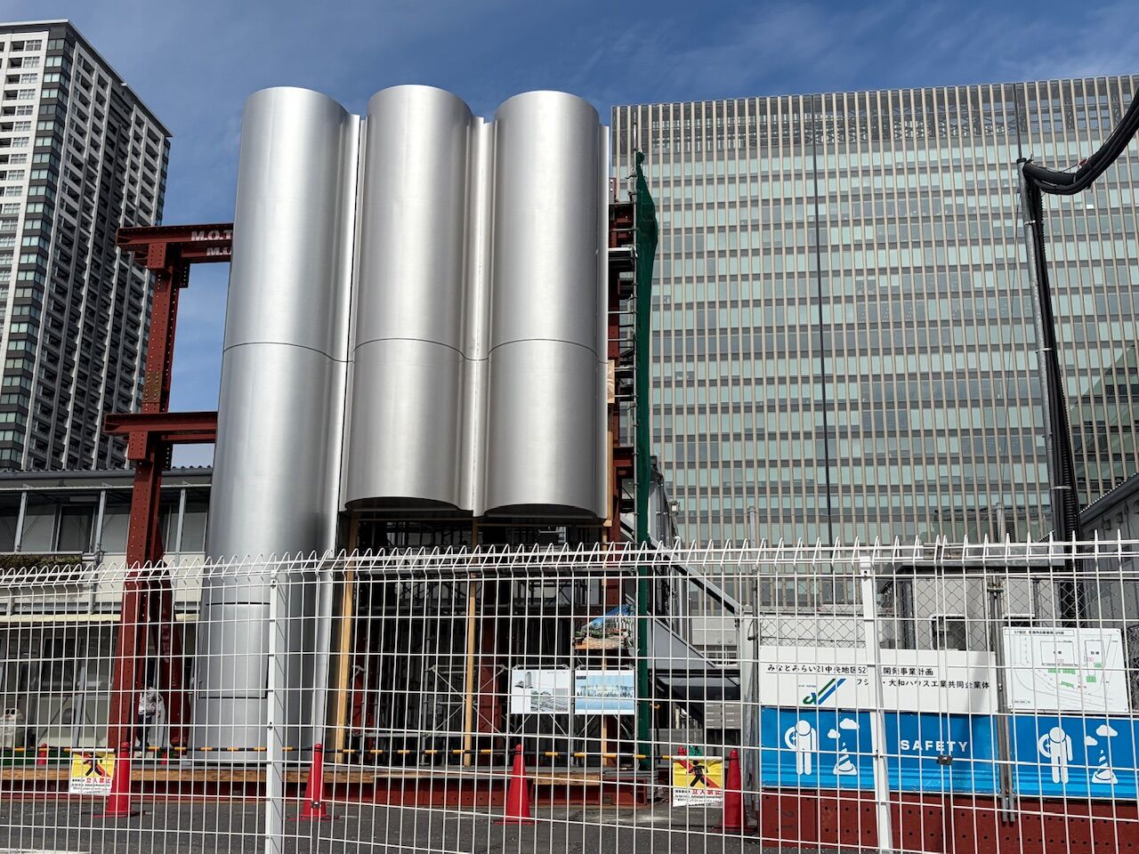 この57街区はいつも車で前を通るだけで、この外装部分が丸っこすぎでビルの外観ぽくないなと思っていました。今はカバーがかけられていますね。。