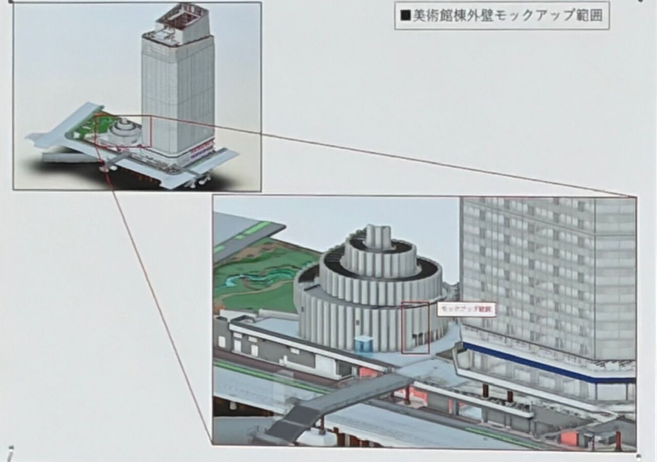 完成予想図が横にあるのを見かけ、望遠持ってきて撮ってみると(画像粗くすみません)、どうもゲームアートミュージアムの外観である様だとわかりました。