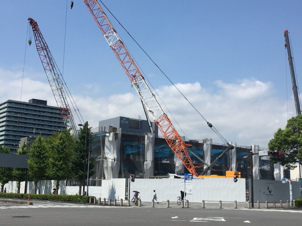 44街区南側に、いつの間にか低層部分の鉄骨が組み上げられました。
