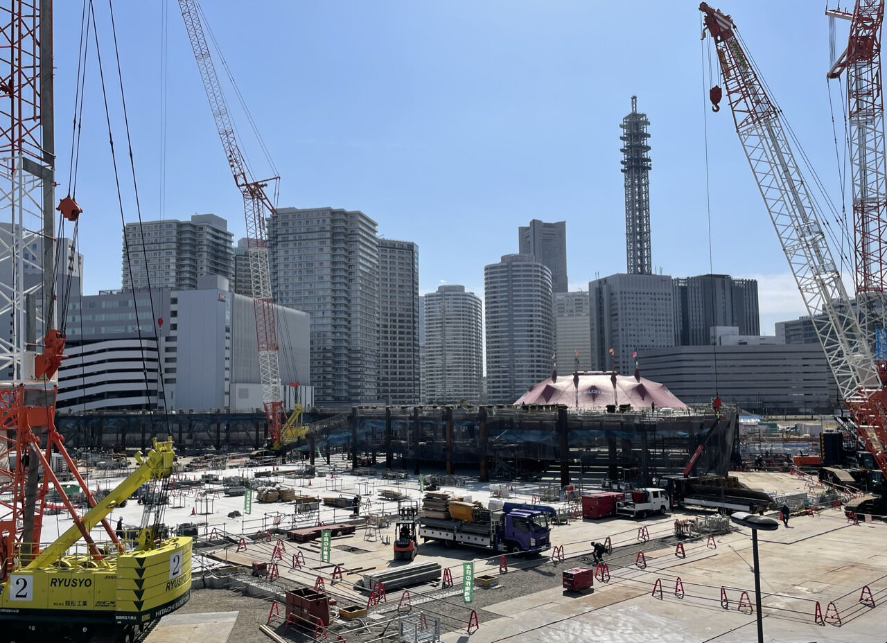 JICAの2階を改造してデッキ埋め込むか外側につけるのかと思ったら、結構ガッツした外観のデッキが新たに設けられ、ハンマーヘッドに直結するようです。