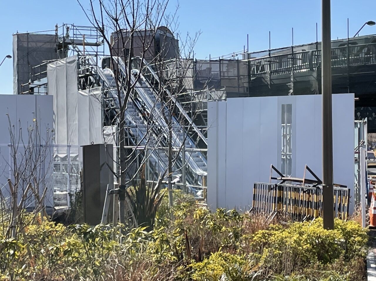 新港中央広場や、7街区駐車場に向かうエスカレーターが整備中。