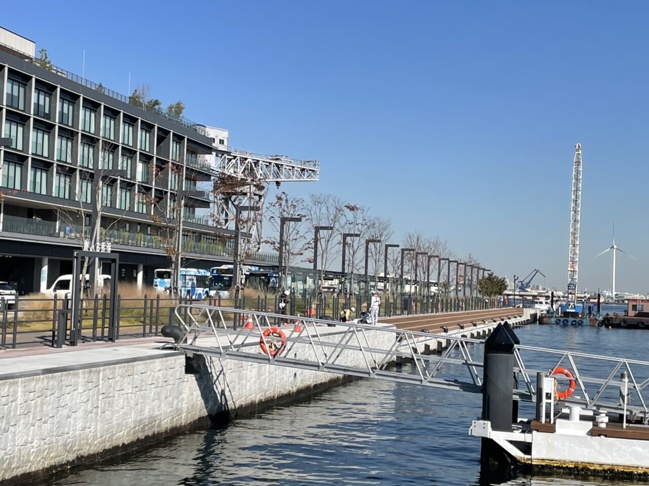 2021年11月28日 新港さん橋 そろそろ完成? ハンマーヘッドパークのアクセス部分の岸壁の改修が進められています。すっかり久しぶりの更新恐縮です。どうもアカウント絡みで変なメールが多く、拍手数も異常に多く、気持ち悪く更新控えていました。だいぶ出来上がってきたようですね。併せて、新港さん橋なる新しい桟橋も整備されるようです。シーバスが一部立ち寄るのか、別の遊覧船になるのか。。水面近くまで階段状にアクセスできるような部分も整備されているようで、臨港パークの海沿い部分の「新港埠頭」版みたいな色合いで整備が進められています。ハンマーヘッド地区もすっかり馴染み、いつも人の賑わう一帯になってきました。岸壁整備で、益々親水性が高まりそうですね。