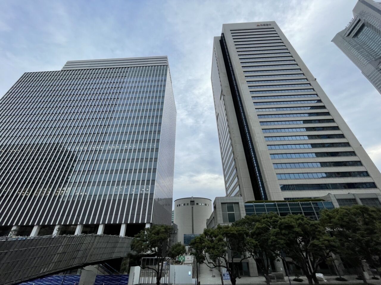 よーく見るとオフィスフロアの頭頂部付近にテナントのロゴを取り付けられるような器具が設置されていますね。パナソニック系が横浜市内に散財する子会社、事業会社のオフィス部門でも集めるのでしょうか。。するとPanasonicのロゴが掲げられるかも。。
