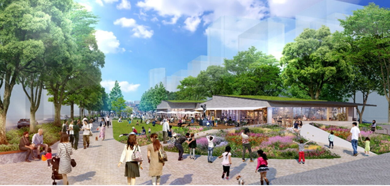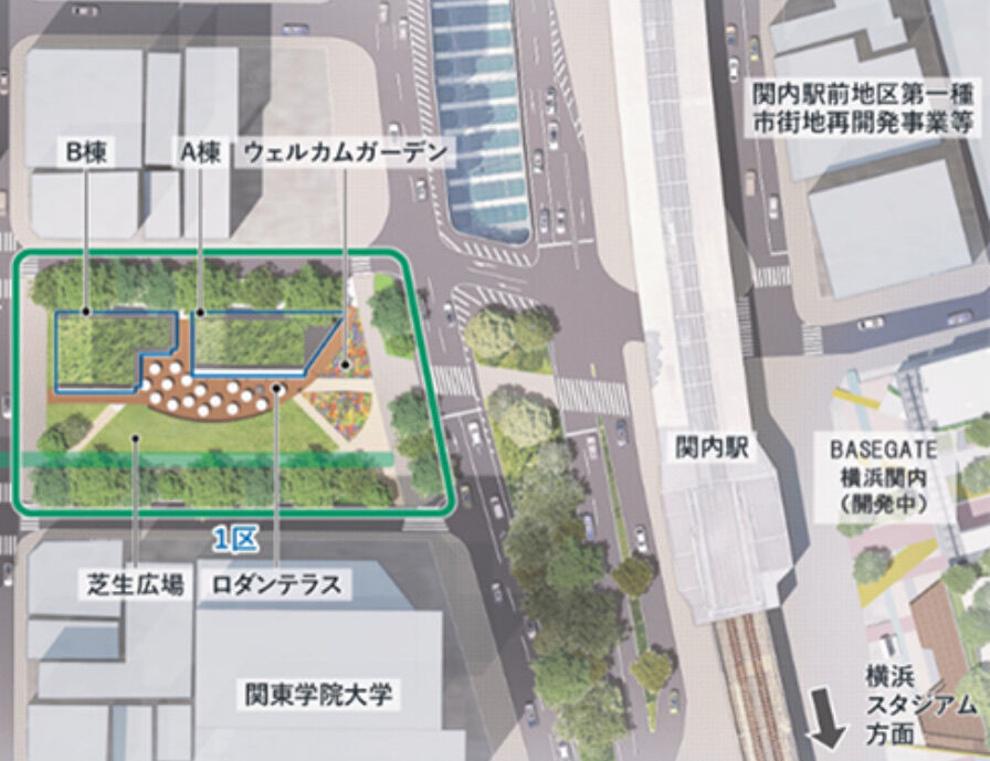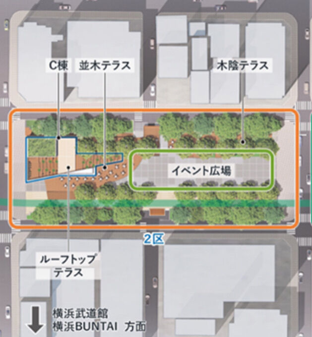 隈研吾さんが手掛けた、飲食街ビルも隣接。