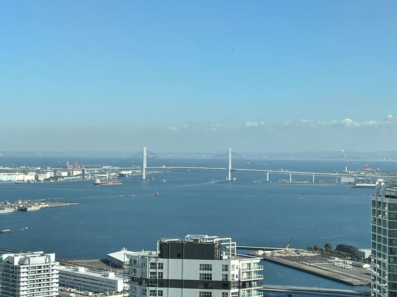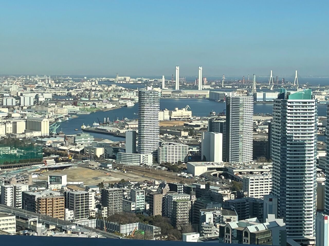 あまり自由に高層階からの展望を楽しめるほど、一般開放されてはいませんが所々からみなとみらいを眺めることができます。