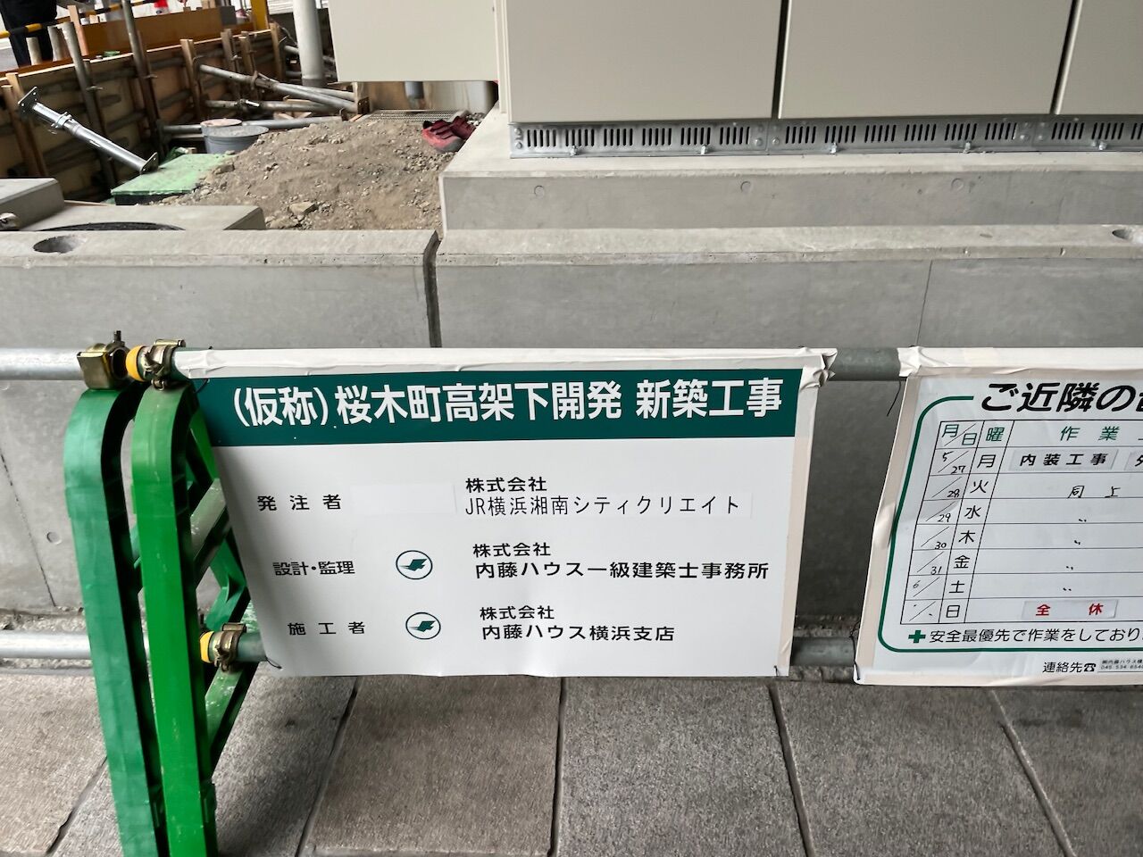 近くに寄ってみると、「桜木町高架下開発 新設工事」との案内が設置されています。