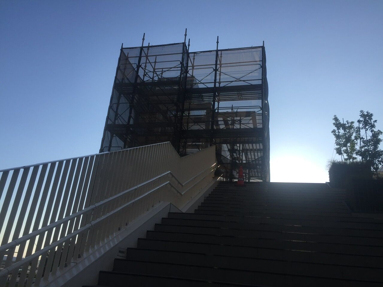 ペデストリアンデッキの50街区側のエレベーター設置工事も本格化してきました。